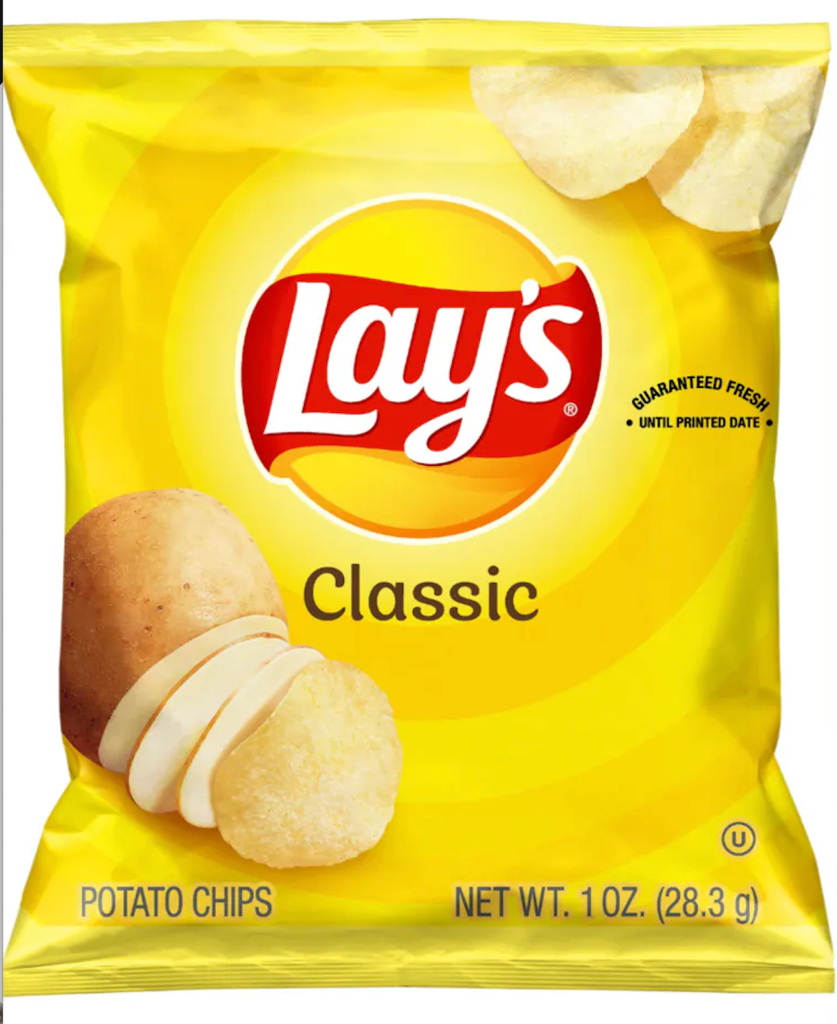 Each bag contains: 1 Gatorade (12fl oz. - flavors vary), 1 Dole fruit cup (mandarin orange), 1 pouch Lays potato chips (classic), 1 pack Oreo cookies (2-count), 1 pouch Doritos (nacho cheese flavor), 1 Country Archer Grass-fed Beef Stick (original flavor, mini size), 1 Rice Krispies Treats square (original), 1 Quaker Chewy Granola Bar (chocolate chip), 1 pack Ritz Cracker Sandwiches (cheese)