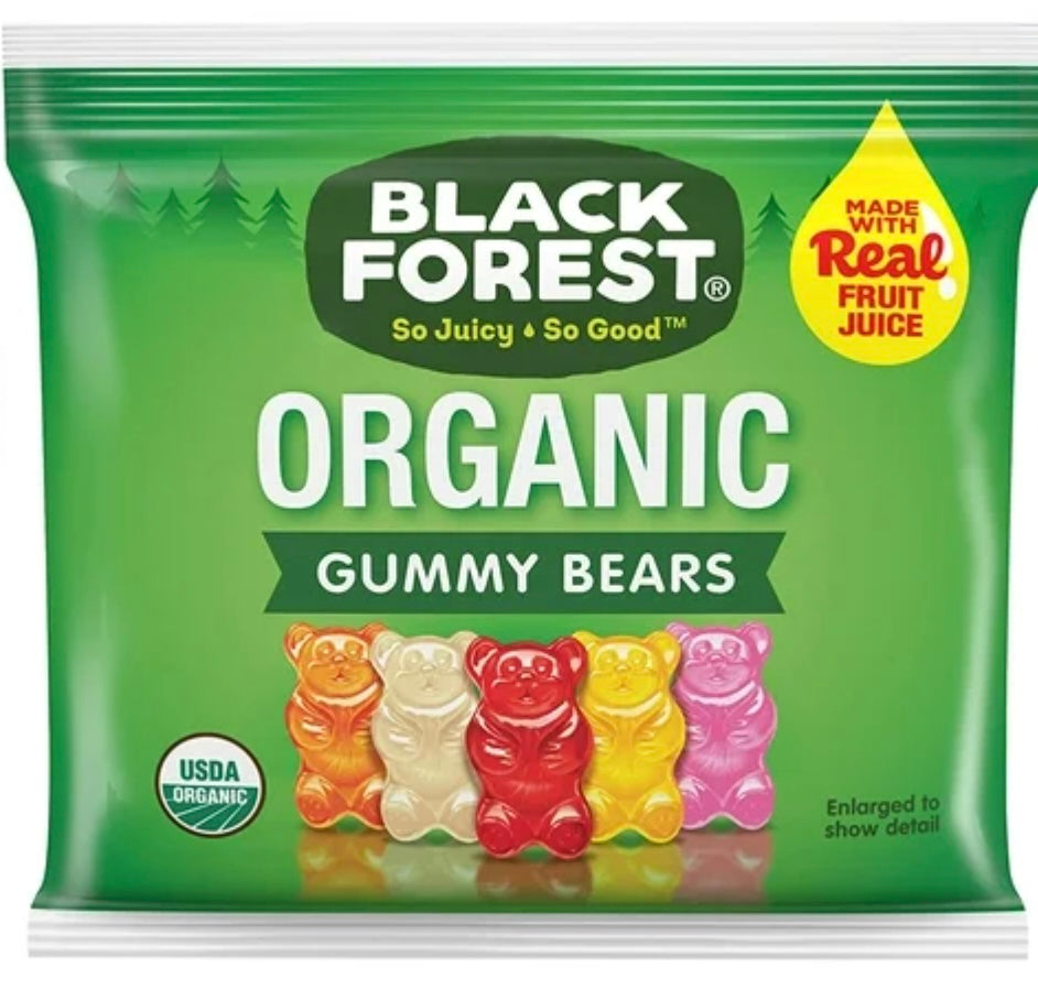 Each bag contains: 1 Honest Kids juice box (flavors vary), 1 pack Bobo's Oat Bites (strawberry or apple), 1 That's It mini fruit bar (strawberry, mango, or blueberry), 1 Lesser Evil brand snack pouch (Himalayan Gold Popcorn, Intergalactic Onion Moonions or Real Organic Cheddar Space Balls), 1 Gala apple, 1 pouch Black Forest Organic Gummy Bears, 1 pack Annie's Organic Baked Snacks (cheddar bunnies or birthday cake bunny grahams), 1 pack Jayone seaweed snacks (roasted & lightly salted)